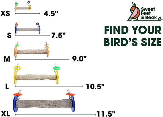 Roll Bird Swing - Pumice Perch Bird Toys Trims Nails and Beaks, Safe and Non-Toxic Bird Cage Accessories for Small and Large Birds, Swinging Toys Birds Will Love, Medium 9 Inches