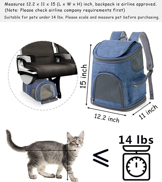 Small Pet Backpack Carrier - Cat Backpack Carrier Airline Approved - Pet Carrier Backpack for Small Dogs, Rabbits up to 14Lbs, Scratchproof Mesh Puppy Backpack for Cats, Escape-Proof Zipper