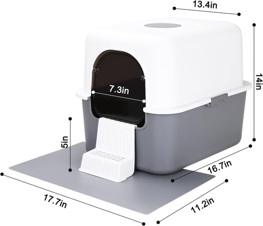 Cat Urine Litter Box with Pedal, Fully Enclosed Leak-Proof for Small Cats under 8 IB, High Edge and Odorless, Easy to Carry and Clean (Grey with Handle, S)