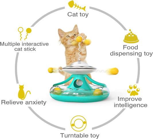 Cat Tracks Toy Roller 2-Level Windmill Turntable Cats Toys Kitty Teaser Stick Ball Kitten Balls Food Dispenser Interactive Pet Supplies for Indoor Birthday Gift A