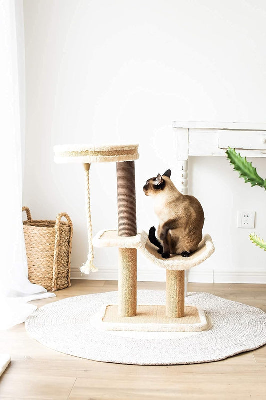 Cat Tree with Scratching Post - Cozy Design of Cat Hammock and Teasing Sisal Cat Rope Invariably Allure Kitten to Stay around This Sturdy and Easy to Assemble Cat Furniture (Comfort Beige)
