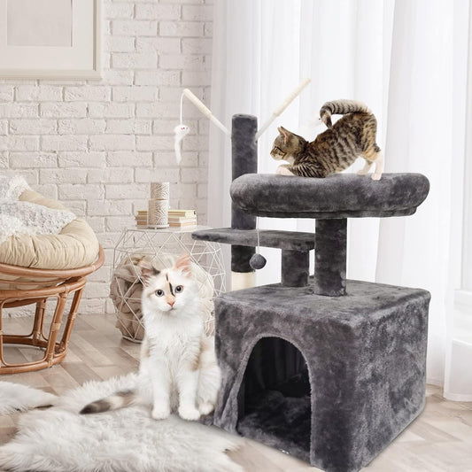 Cat Tree with Scratching Post, Cat Condo Cave, Multifunction Cat Tower, Top Perch, Kitten Plush Toys, Cat Activity Center,Grey