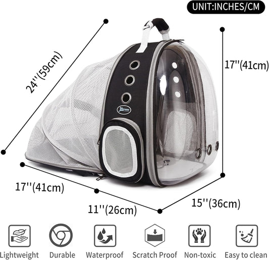 Cat Carrier Backpacks Bubble Bag, Dog Backpack Carrier for Small Dogs/Kitten, Expandable Airline-Approved Transparent Pet Carrying Hiking Traveling Backpack (Black)
