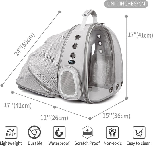 Cat Backpack Carrier, Ventilate Transparent Pet Backpack for Small Dogs Hiking, Travel, Outdoor, Airline-Approved Space Capsule Backpack (Grey)