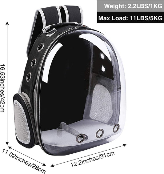 Cat Backpack Carrier Bubble Bag,Small Dog Backpack Carrier for Puppies or Rabbit,Space Capsule Pet Carrier Backpacks Airline Approved for Travel Outdoor Use,Black