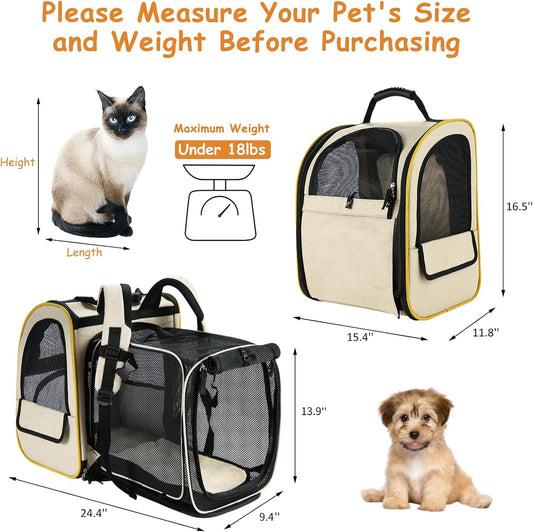 Cat Backpack Carrier, Expandable Pet Carrier Backpack for Small Cats Dogs, Dog Carrier Backpack with Breathable Mesh for Travel Hiking Camping, Hold Pets under 18 Lbs, Khaki