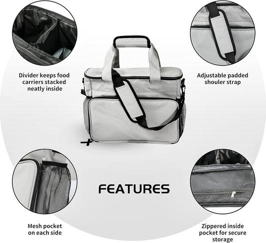 Dog Travel Bag for Supplies - Double-Layer Airline Approved Weekend Pet Travel Organizer Set for Dog and Cat Tote with 2 Pet Food Containers and 2 Collapsible Silicone Bowls Grey