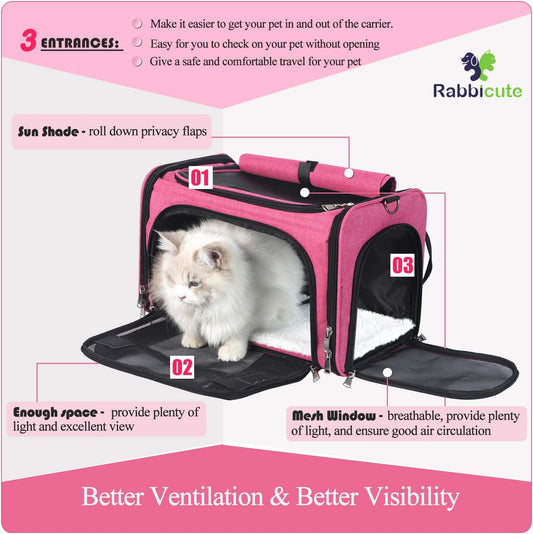 Pet Dog Cat Carrier Bag for Medium Small Dog Cat with Washable Cozy Bed Locking Safety Zipper Shoulder Strap Airline Approved Pet Carrier Portable Collapsible Puppy Carrier Escape Proof