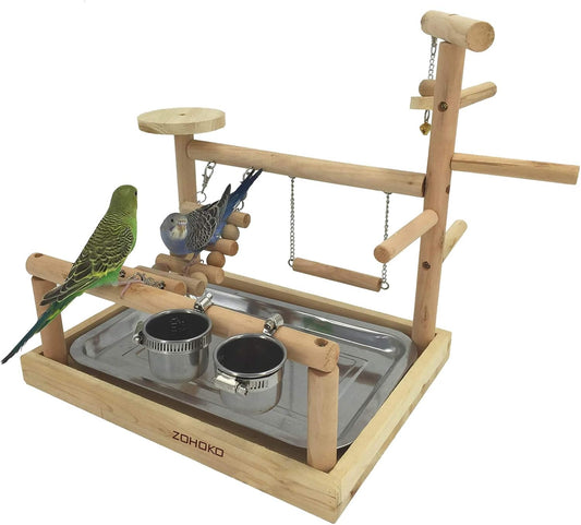 Parrot Cage Toys, Bird Playground Play Stand Perches for Parakeets Cockatiel Budgie, Bird Playgym with Feeder Cups Exercise Toys