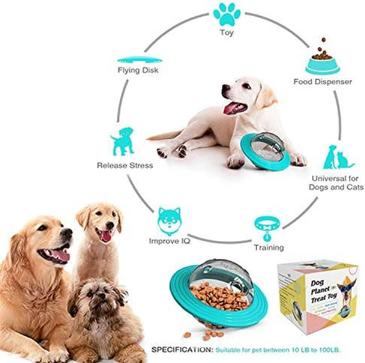 Interactive Dog & Cat Treat Ball Toy Paraflight Flyer Frisbee Design, IQ Food Dispenser Dog Puzzle Slow Feeder Funny for Small Medium Dogs Stimulation Playing Chasing Chewing
