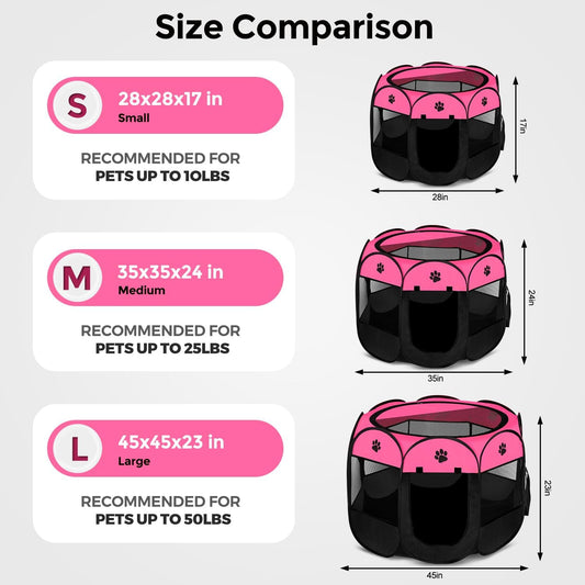 Pet Dog Puppy Playpen Dog Cat Tent Crates, Foldable Exercise Kennel Portable Playpen for Small Medium Dogs/Cats/Rabbits, Indoor Outdoor Travel Camping Use with Removable Zipper Top