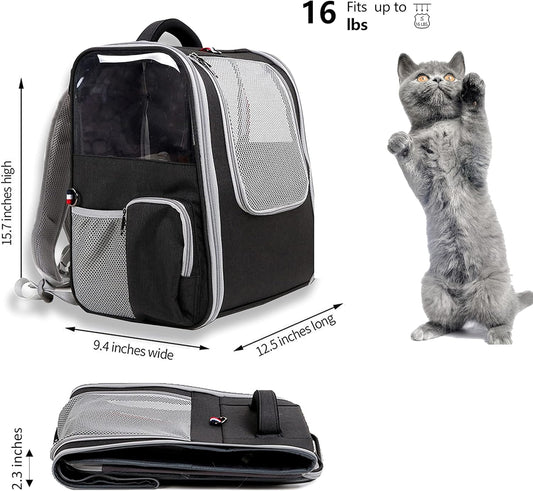 Pet Carrier Backpack Expandable Collapsible Dog Backpack Carrier for Small Dogs Cats, Breathable Pet Backpack Bag for Travel (11Black)